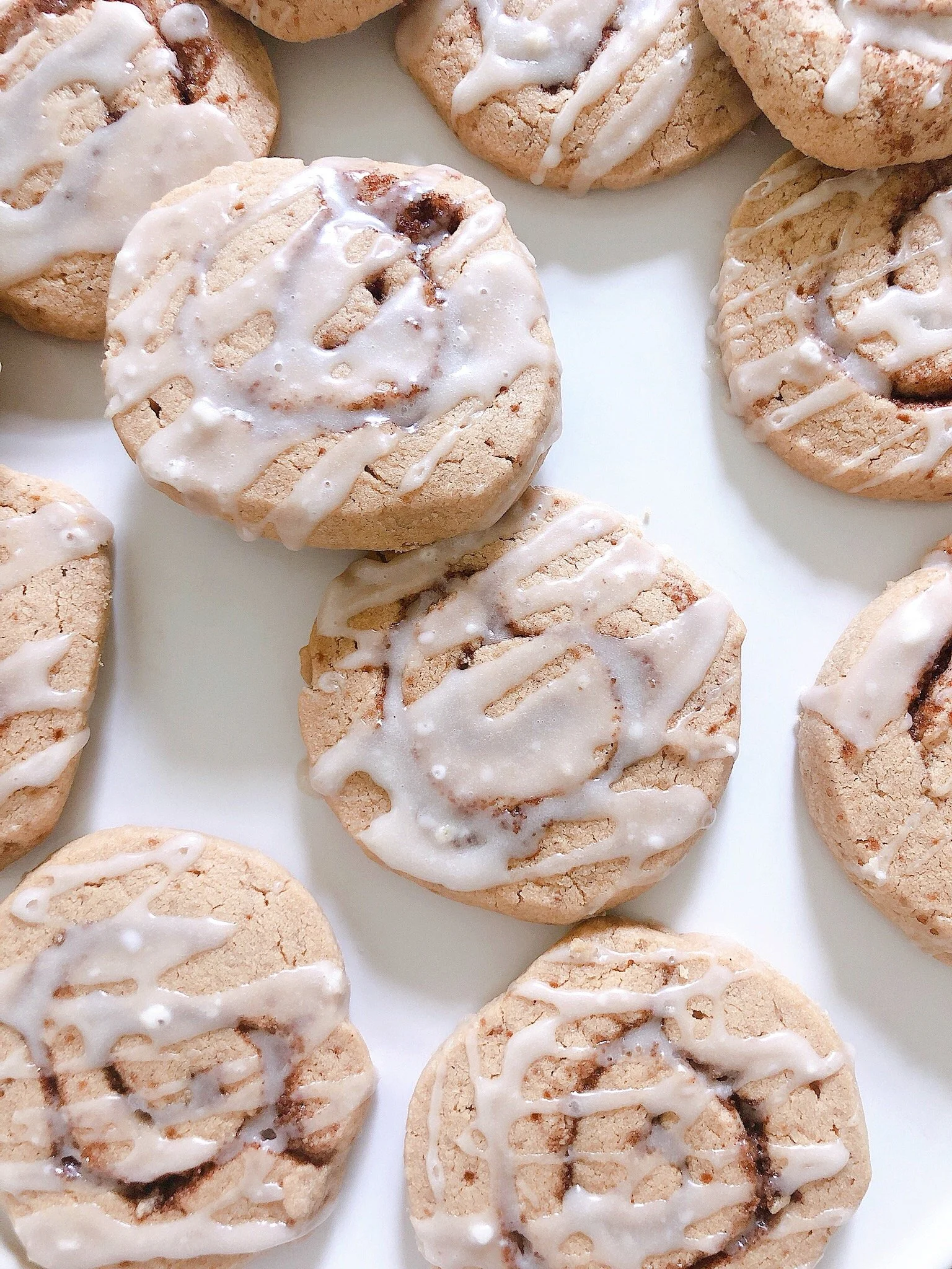 While cookies are baking, make the glaze - combine powdered sugar, dairy free milk, vanilla and cinnamon.
