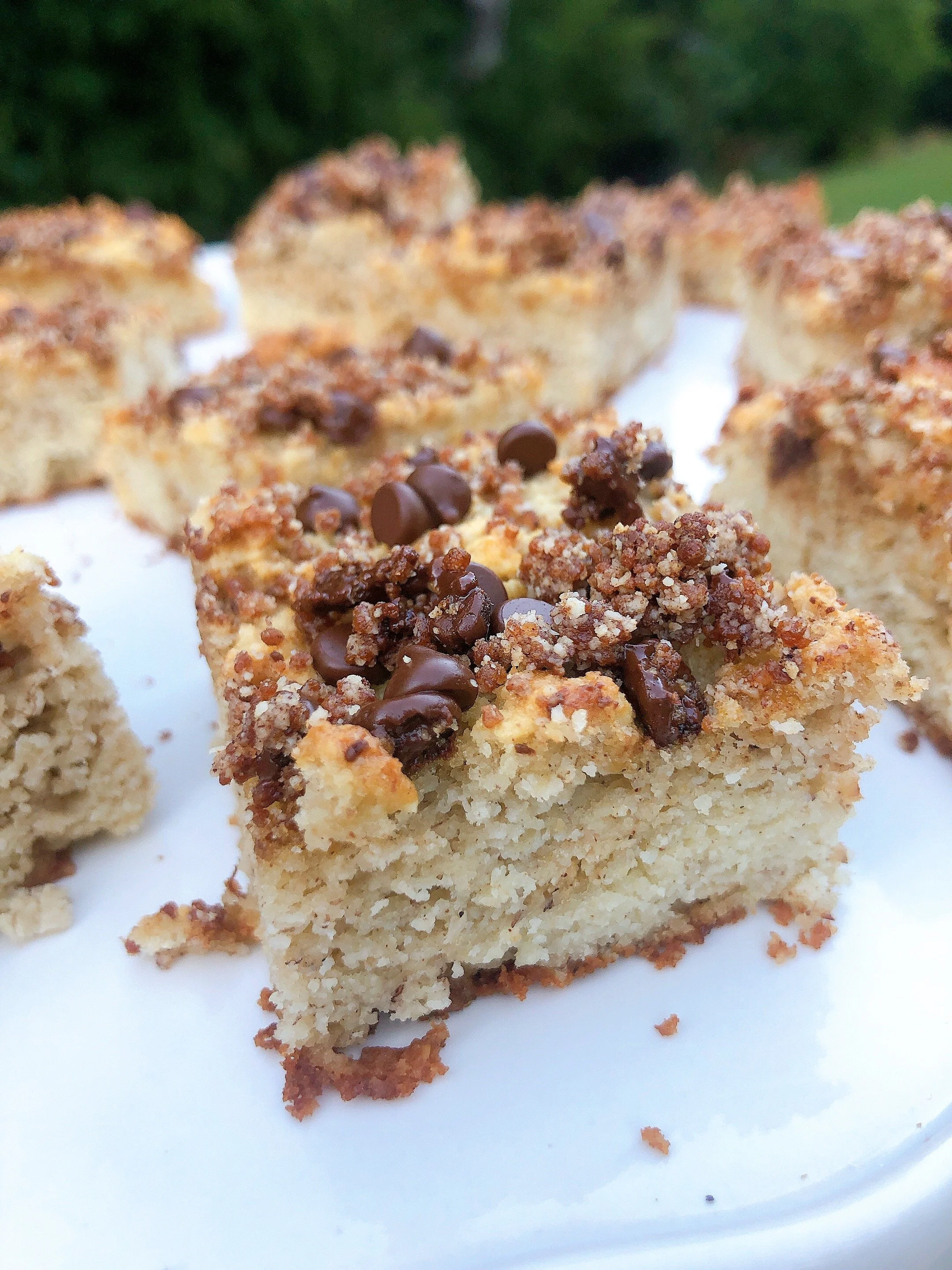 This recipe was born from a very specific craving- coffee cake and banana bread. And I have this problem where I have to add chocolate chips to everything so I did that too.